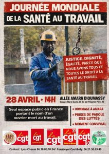 Ce 28 avril 2026, journée internationale de la santé et de la sécurité au travail, la CGT appelle comme chaque année à la mobilisation pour que de réelles mesures soient prises pour en finir avec la mort ou les blessures graves au travail.